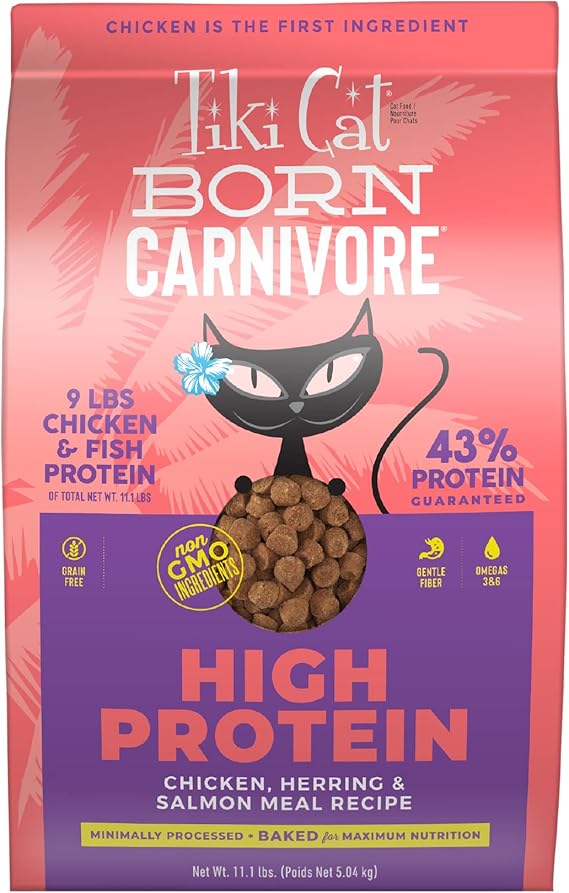Tiki Cat Born Carnivore High Protein Dry Cat Food, Chicken, Herring & Salmon Meal, 11.1 lbs. Bag
