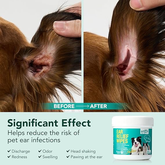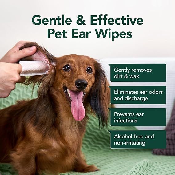 - Ear Wipes for Dogs and Cats - 100 pcs. Effectively remove dirt, earwax, secretions and odor inside and outside the dog's ear canal, relieve ear inflammation, allergies and itching, and prevent ear diseases such as otitis. The shape design conforms to human finger engineering and fits the structure of cat and dog ears, making it easy to hold and use while providing deeper cleaning