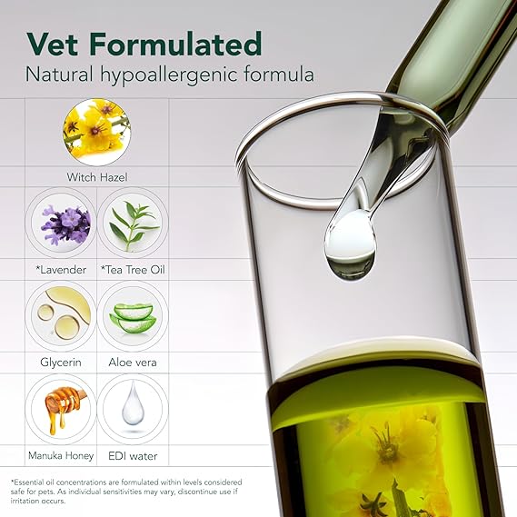 - Safe Ingredients - This dog finger ear wipes is made of: EDI puried water, witch hazel extract, aloe vera extract, tea tree essential oil, manuka honey, glycerin. It helps regulate skin oil secretion while moisturizing delicate skin, leaving the ear canal fresh and non-greasy, and reducing ear itching. Even repairs damaged skin barriers, enhances ear resistance, and reduces the occurrence of ear problems