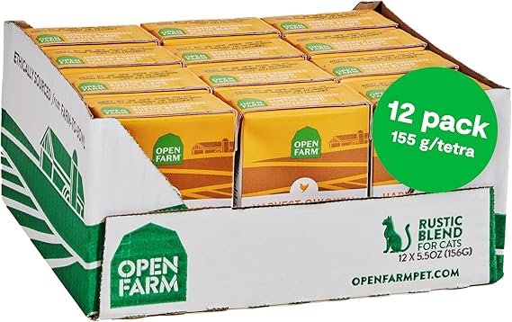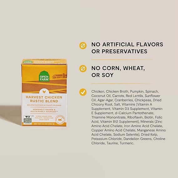 Open Farm Rustic Blend Wet Cat Food, Complete & Balanced Medley with Human-Grade Ingredients, Humanely-Raised Meat, Non-GMO Veggies & Bone Broth, Harvest Chicken Recipe, 5.5oz Packs (Case of 12)