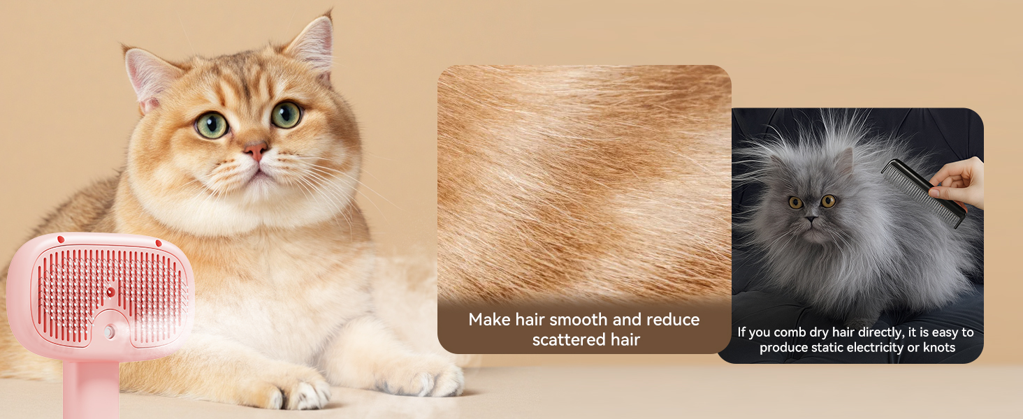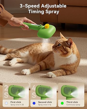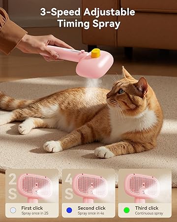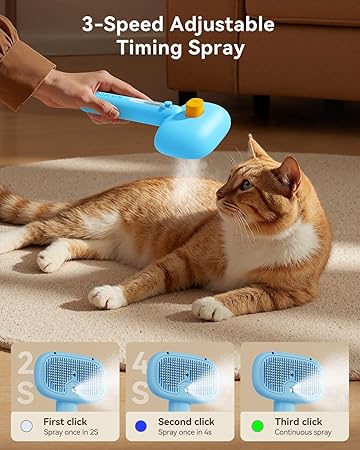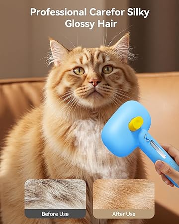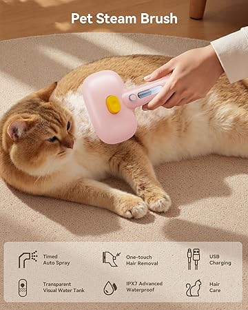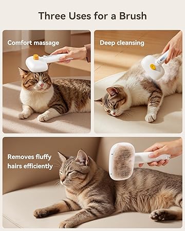 - Unique spray design Say Goodbye to Static & Tangles: Specialized steam brush designed specifically for cat grooming and hair removal needs,Fill with water or pet conditioner (Please dilute and inject it to avoid blockage) to release fine mist. Instantly reduces static, detangles knots, and adds shine - no more frizzy fur or painful pulling.Please add water using the tool included with the package.