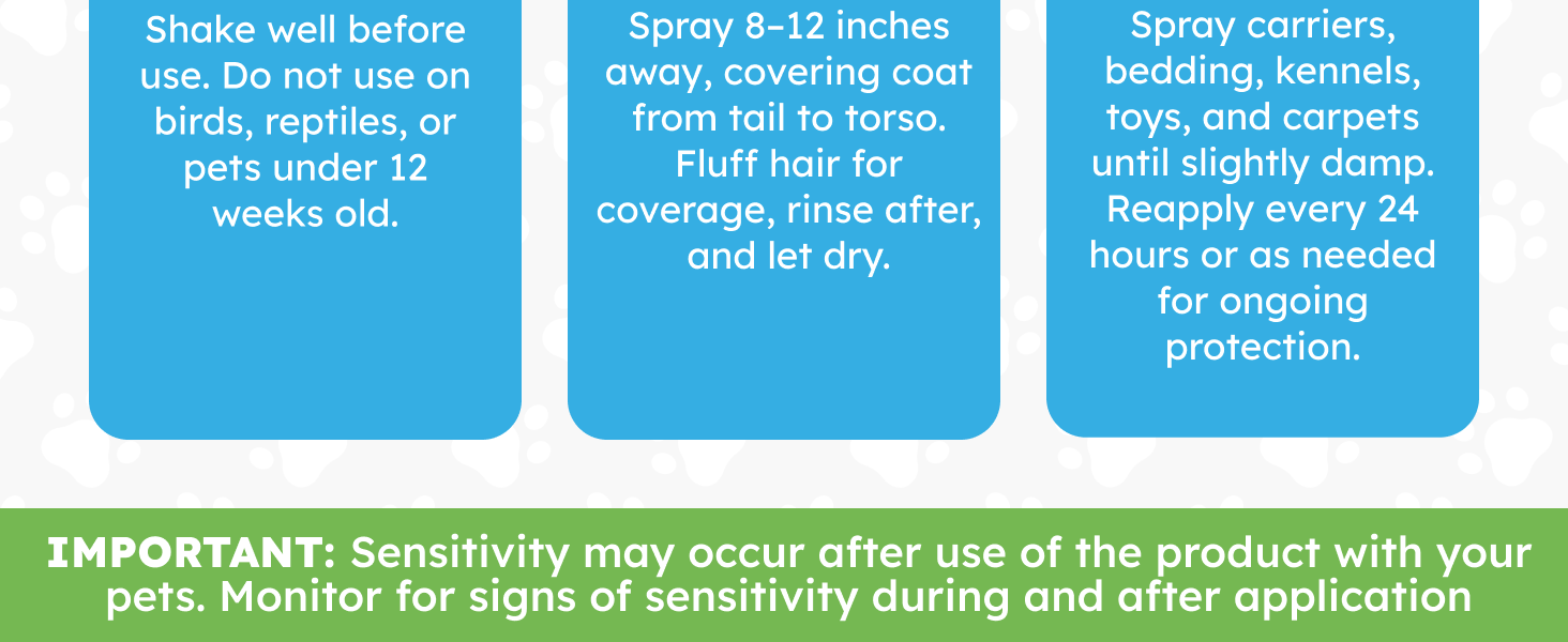- For Your Cat & Your Home: A gentle flea spray for cats and kittens (twelve weeks or older); also powerful as a flea spray for home to treat carpets, cat trees, furniture, and bedding where pests hide