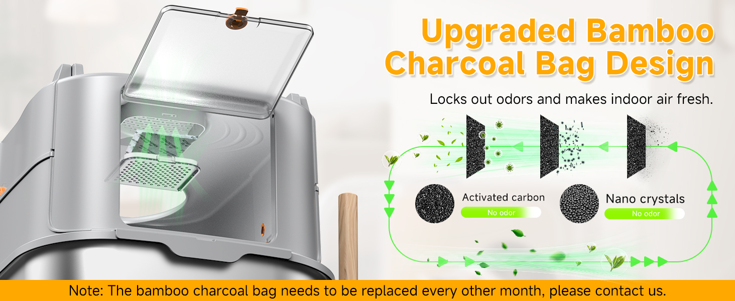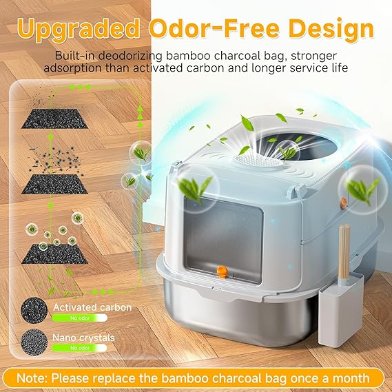 - FULL SET OF ACCESSORIES & LONG-TERM GUARANTEE: This metal cat litter box contains a removable top cover, litter scooper with hanging bracket, bamboo charcoal bag filter and pedals, anti-slip pads, and so on, one-stop solution for your needs. Offers responsive customer support to cover defects in workmanship or transportation damage