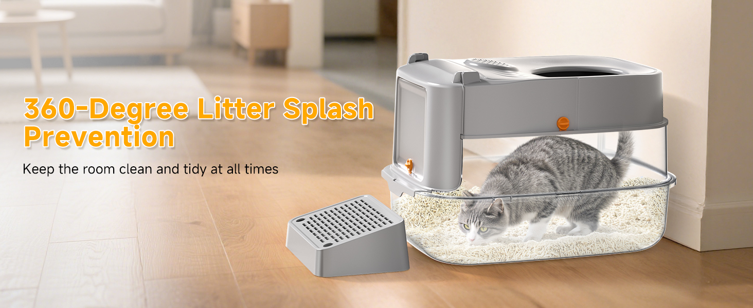 - HUMANIZED CLEANING: The surface of the kitty litter box is easy to wipe. The removable top cover allows scooping without fully opening. Cats can enter/exit via the front door or top cover, reducing litter spillage. The padded pedal helps cats in/out and collects loose litter from their paws, keeping the floor clean