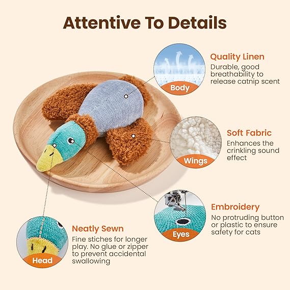 - Cute and Durable: Designed to appeal to both owners and felines, these cute bird-shaped toys are made of soft, durable fabric perfect for biting and clawing, ensuring long-lasting fun.