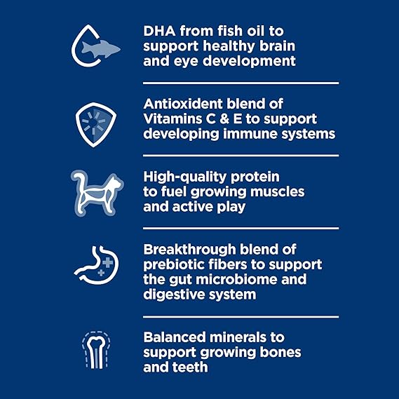 Hill's Science Diet Kitten dry food is specially formulated for the developmental needs of kittens to help start life with healthy growth and a strong immune system.