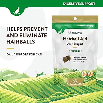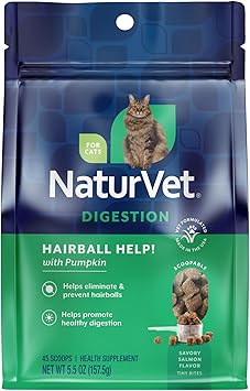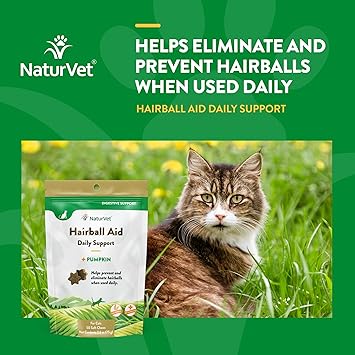 NaturVet - Hairball Aid Supplement for Cats - Plus Pumpkin - Helps Eliminate & Prevent Hairballs - 60 Soft Chews