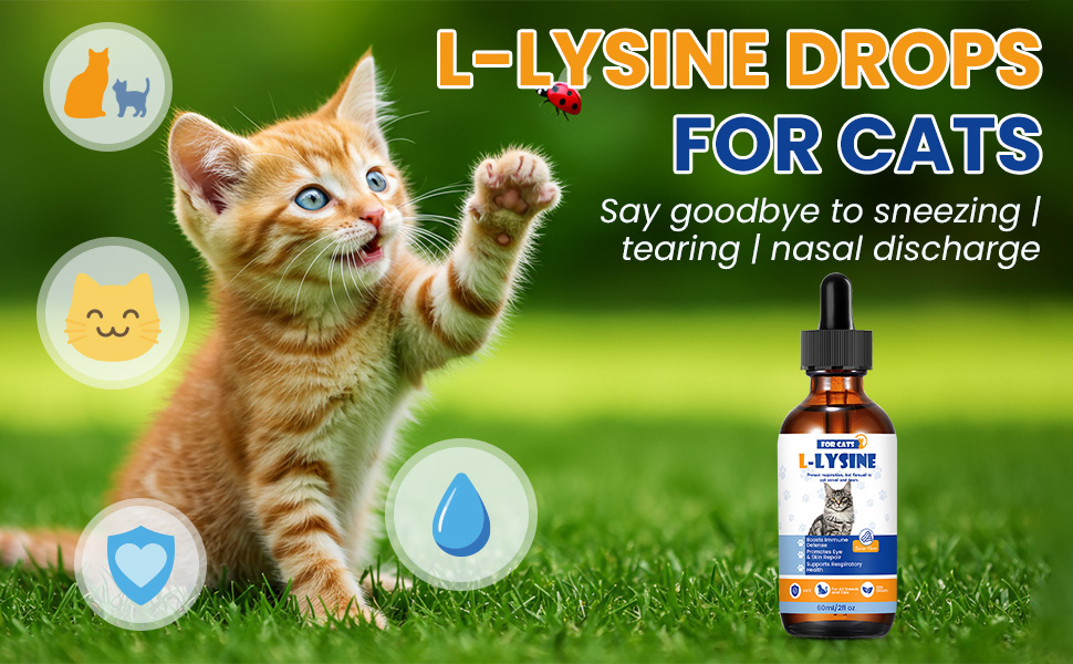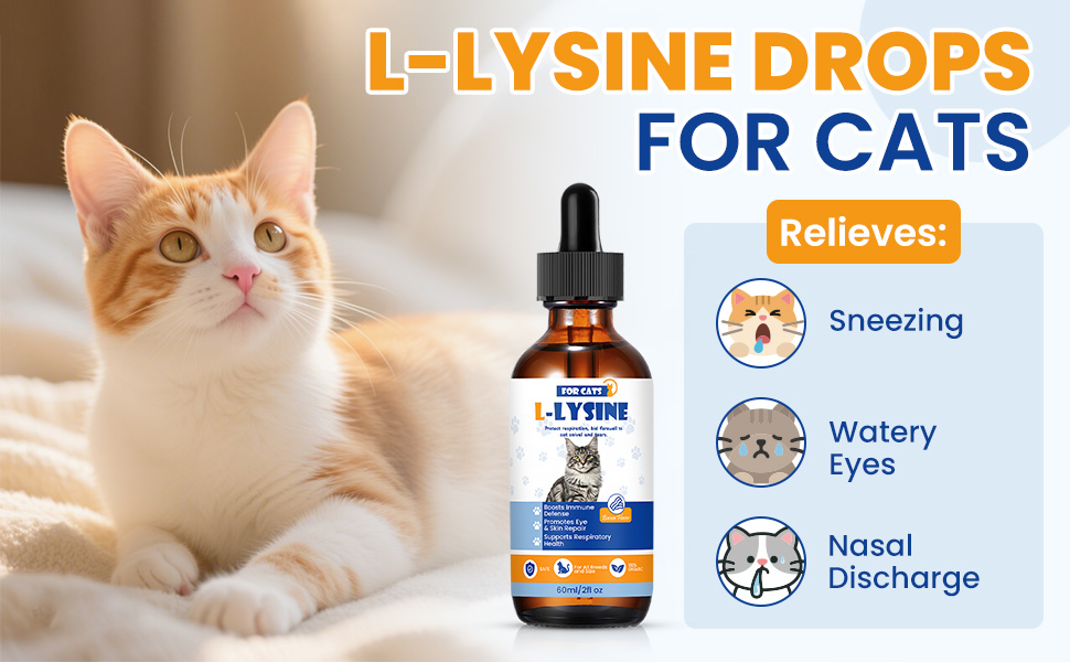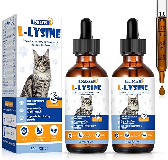 - L-LYSINE FOR CATS,IMMUNE & RESPIRATORY DEFENSE :Our l-lysine drops target feline needs: eases sneezing, runny nose, eye discharge, and cold symptoms. With l-lysine HCl, it boosts immunity, critical for stressed or growing cats. Blended with vitamins (A, B, C, D3, E) and minerals (Zinc, Copper, Iron), it supports metabolism and energy. This l lysine cats formula is your go-to for respiratory health, ensuring your cat thrives even during seasonal shifts or stress