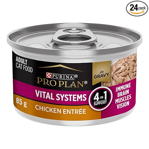 Purina Pro Plan Wet Cat Food Vital Systems Chicken Entree in Wet Cat Food Gravy 4-in-1 Immune, Brain, Muscle and Vision - (Pack of 24) 3 oz. Cans