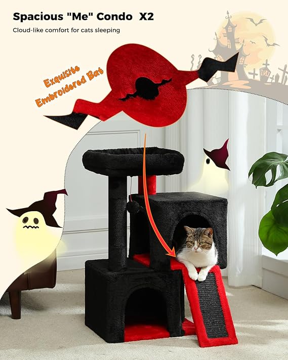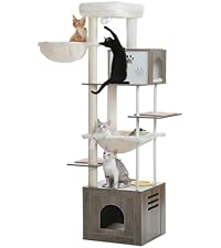 - Ultimate Feline Comfort:This tall cat tree features two large, plush condos (size) and a basket (size) that serve as the perfect retreat for your cat’s relaxation and play and offer a quiet, private space. While 2 wide perches (size) serve as sunbathing zones offering 360° birdwatching views.