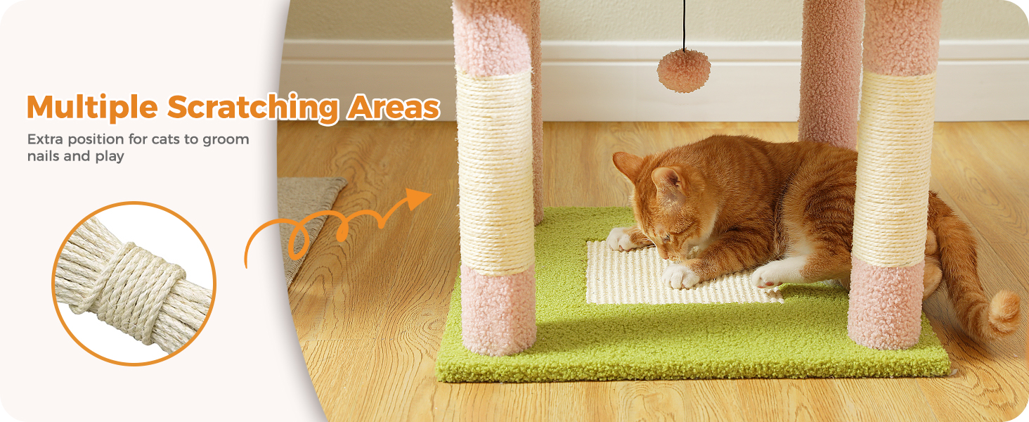 - Durable Scratching Posts & Board: Equipped with 6 sturdy scratching posts and 2 large scratcher board , this cat tree with scratching post satisfies your cat’s natural instinct to scratch, protecting your furniture from claw damage. The high - quality sisal materials ensure long - lasting use, keeping your cat entertained and your home safe.