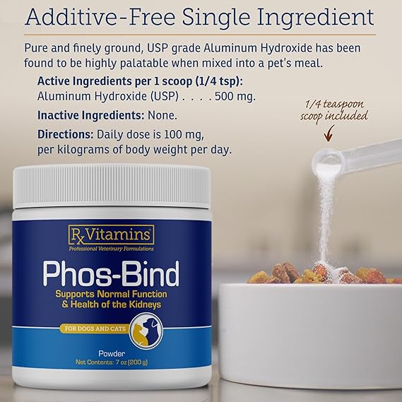 - Veterinarian Formulated: Crafted by veterinarians, our kidney health supplement powder guarantees the highest quality and effectiveness in promoting your pet's well-being. With its clean, single ingredient formulation, Rx Vitamins Phos-Bind ensures safety and efficacy, offering the best kidney support for your dog or cat.