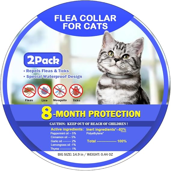 Flea and Tick Collar for Cats 2 Pack, 8 Months of Cat Flea Collar Protection 2 Collars Made with Premium Plant Based Essential Oil Waterproof and Natural Treatment Prevention Free Comb