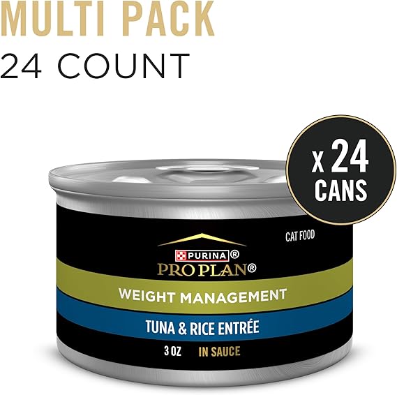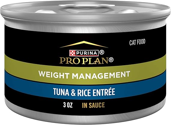 Purina Pro Plan Adult Weight Management Tuna and Rice Entree in Sauce Weight Control Cat Food 3 Ounce (Pack of 24)