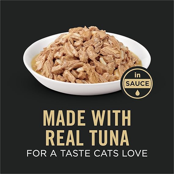 Give your cat the specific adult cat food nutrition to maintain a healthy weight with this weight management formula. Purina Pro Plan Adult Weight Management Tuna and Rice Entree in Sauce High Protein Wet Cat Food is a specialized formula that offers high-quality protein, including real tuna, to help maintain muscle mass during weight loss. This Purina Pro Plan wet cat food offers complete and balanced nutrition for the maintenance of adult cats, with 10 percent fewer calories than Pro Plan Complete Essentials Ocean Whitefish and Tuna Entree Grain Free Classic. This tuna cat food contains essential vitamins and minerals, plus taurine for vision health, and antioxidants for cat immune support. Purina Pro Plan Adult Weight Management Tuna and Rice Entree in Sauce High Protein Wet Cat Food does not contain artificial colors or preservatives and offers 100 percent complete and balanced nutrition for adult cats, trusted by veterinarians.