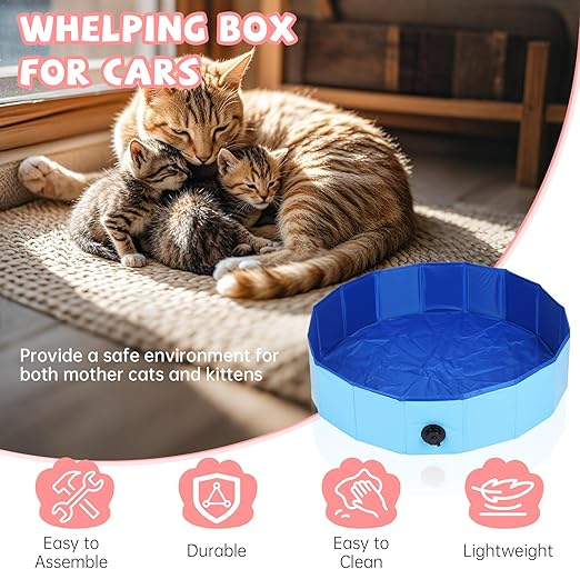 Cat Birthing Box, Whelping Box for Cats - 32inch Dia.x8inch H, Whelping Pool, Pet Birth Supplies, Foldable Cates Bath Pool, Convenient Storage, Easy to Clean,Can be Used Indoors or Outdoors