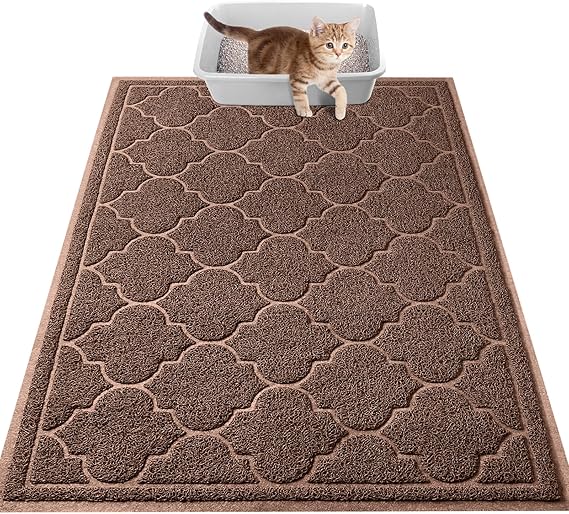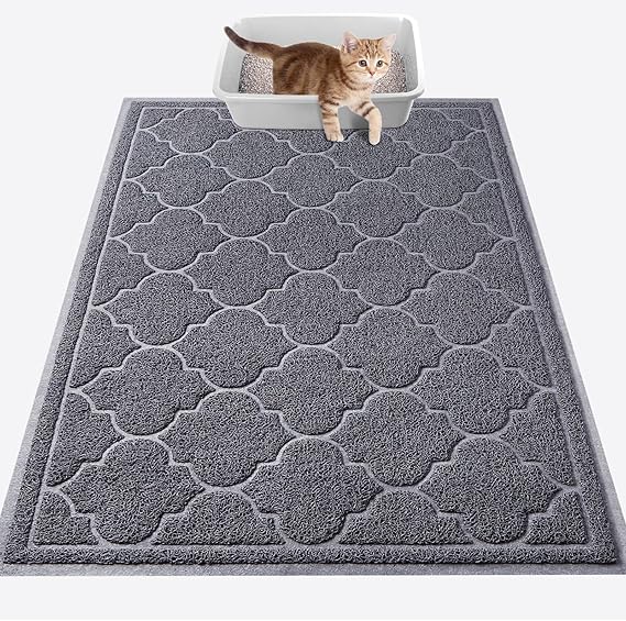 LuxStep Cat Litter Mat Litter Trapping Mat, 23x35 Inch Waterproof and Non-Slip Mat for Clean Floors, Large Litter Pad for Indoor Cat Supplies and Essentials, Grey