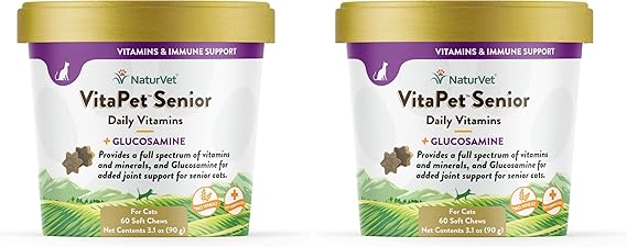NaturVet VitaPet Senior Daily Vitamins for Cats Plus Glucosamine, Specifically Formulated to Provide Essential Minerals, 90 g, 60 Count