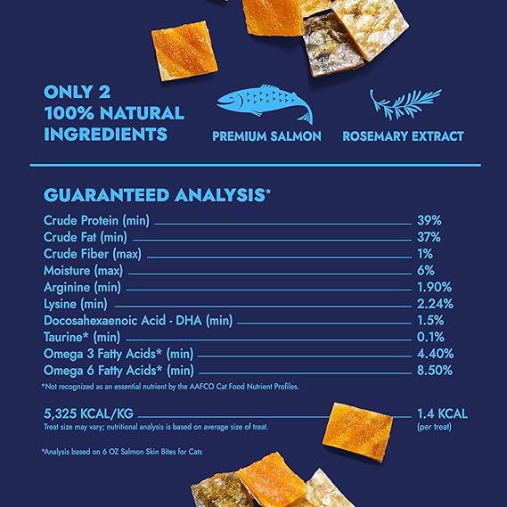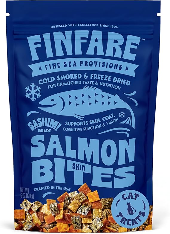 Finfare Freeze Dried Salmon Skin Bites, Grain Free Crunchy Salmon Cat Treats, High Protein & Omega-3s for Skin & Coat Health, Crafted in USA, 1.3oz