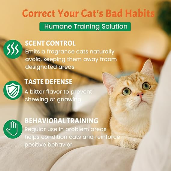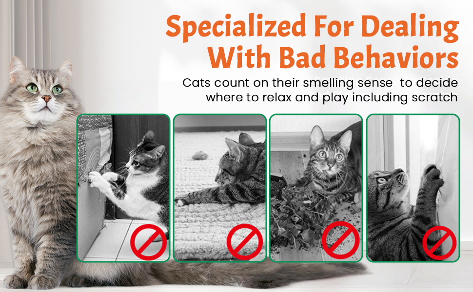- STOPS SCRATCHING & CHEWING: Cat spray deterrent for urine marking can keep your cats from damaging in your home by preventing them from entering bedrooms, kitchens, or other restricted areas. Provides reliable protection against unwanted scratching and chewing behavior.