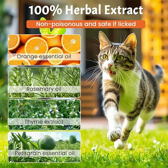 - 100% NATURAL FORMULA: Made with cat-disliked natural ingredients like citrus, rosemary & thyme, non - toxic if licked. Cat spray deterrent for scratching contains no harsh chemicals or strong odors, harmless to pets, kids & nursing mothers. Fresh, clean scent - dries clear, no stains. Safe for furniture, sofas & plants.