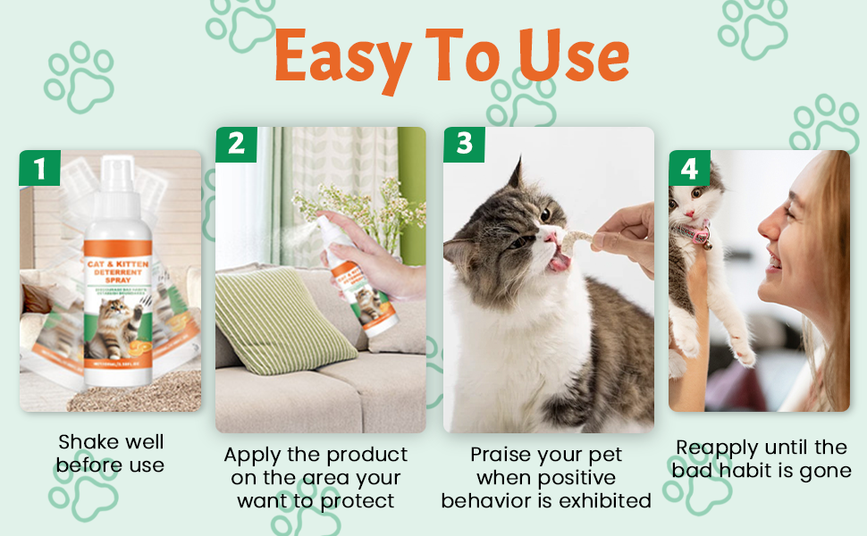 - TRUSTED BY PET EXPERTS: Vets recommend this step-by-step behavior solution. Patience and consistency are key - regular spraying (not 1-2 uses) brings results. For first use, spray anti scratch cat spray heavily to soak all areas. Full effects typically appear within weeks.