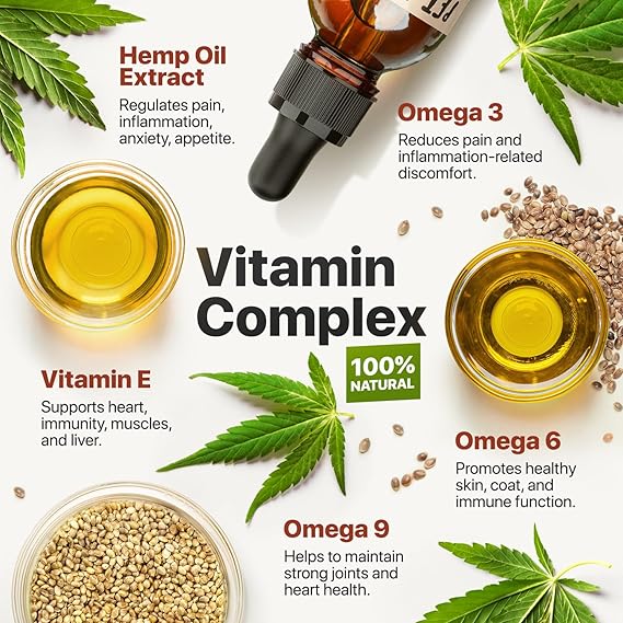 - Natural help: omega 3, 6, 9 and vitamin e are equally important for people and their tailed friends, pets would thank you for this organic hеmp oil rich in vitamins and fatty acids