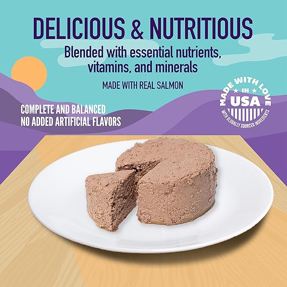Elevate your feline companion's mealtime experience with our Complete and Balanced Salmon Pate Wet Cat Food. Expertly crafted to entice your feline's senses and provide essential nutrition, this savory, delightful, delectable pate is a testament to our commitment to their well-being.