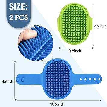 Dog Grooming Brush, Lilpep Pet Shampoo Bath Brush Soothing Massage Rubber Comb with Adjustable Ring Handle for Long Short Haired Dogs and Cats (Blue+Green, pack of 2)