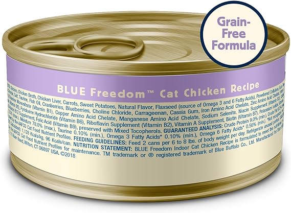 Blue Buffalo Freedom Grain-Free Adult Wet Cat Food, Complete & Balanced Nutrition for Indoor Cats, Made with Natural Ingredients, Fish Recipe, 5.5-oz Cans (24 Count)