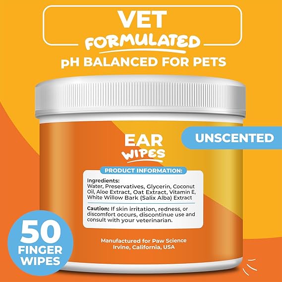 - Patent-Pending Design: Paw Science's USA-designed wipes are hypoallergenic and pH balanced to protect the sensitive ears of your cat or dog.