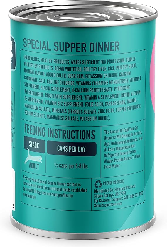 A Strong Heart Canned Wet Cat Food, Special Supper Dinner - 13.2 oz Cans (Pack of 12), Made in The USA with Real Turkey & Fish