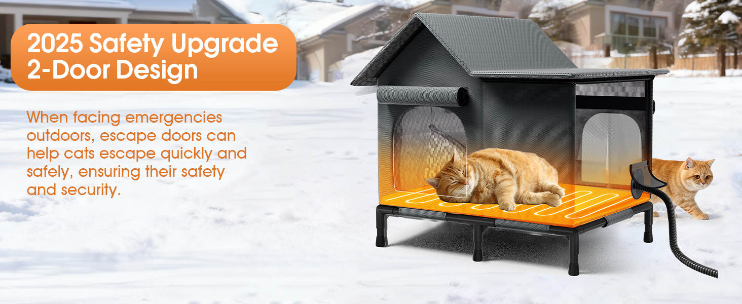 - 【 Large Size & Dual-Door Design 】With ample room for cats of all sizes to stretch, turn and rest, this shelter is lined with a soft, washable inner layer for added comfort and cleanliness. The innovative dual-door design includes a main entrance and a rear escape door, providing easy access and an quick exit route— reducing stress and preventing trapping. Especially in multi-cat households or outdoor settings, making it a favorite sanctuary for the pet.