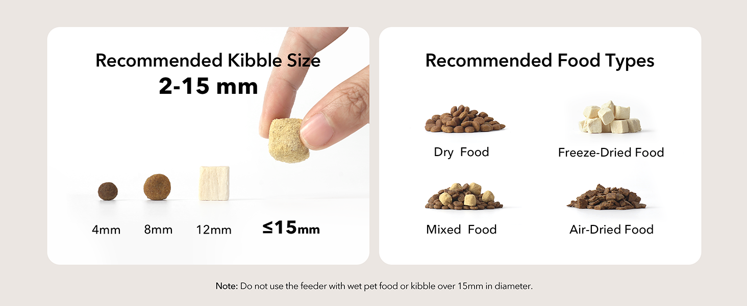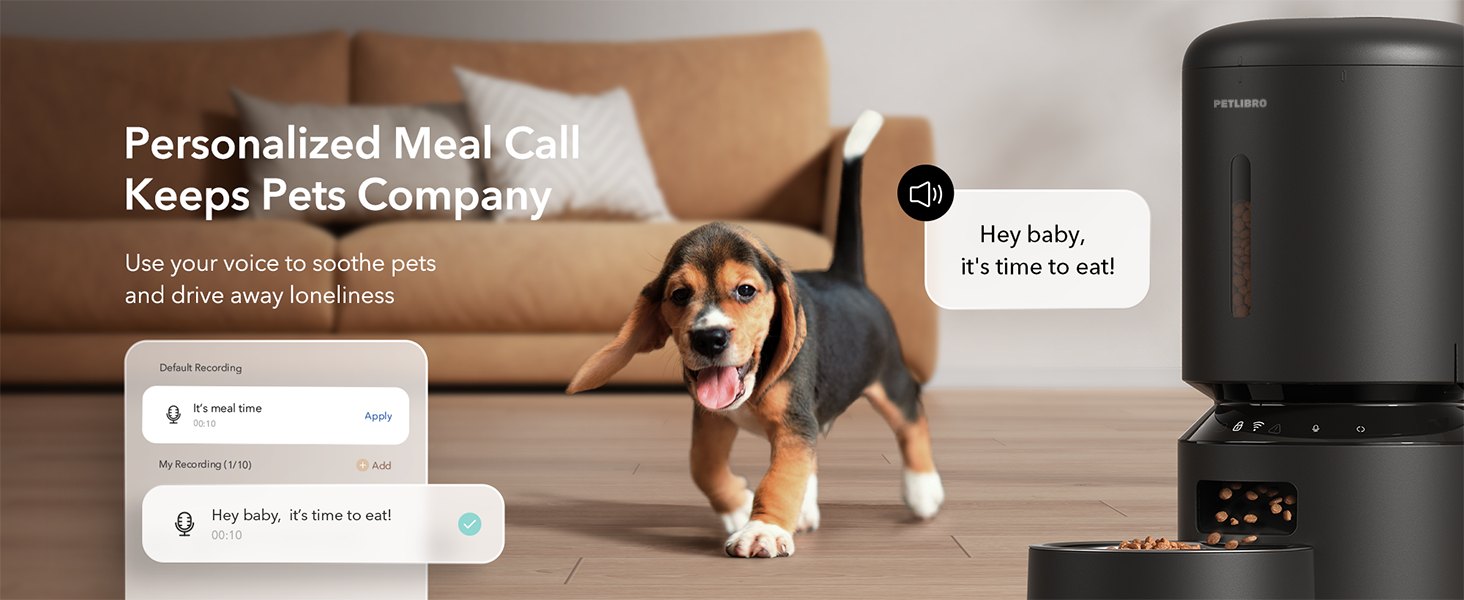 - Personalized Meal Call: Record a voice message for up to 10 seconds that plays for each feeding, and freely set the times the meal call play, so your pet can feel your care even when you're not at home. Not only that, but the thoughtful automatic cat food dispenser provides you with the ability to record up to 10 customized meal calls and adjust the volume to your needs!