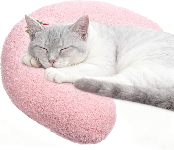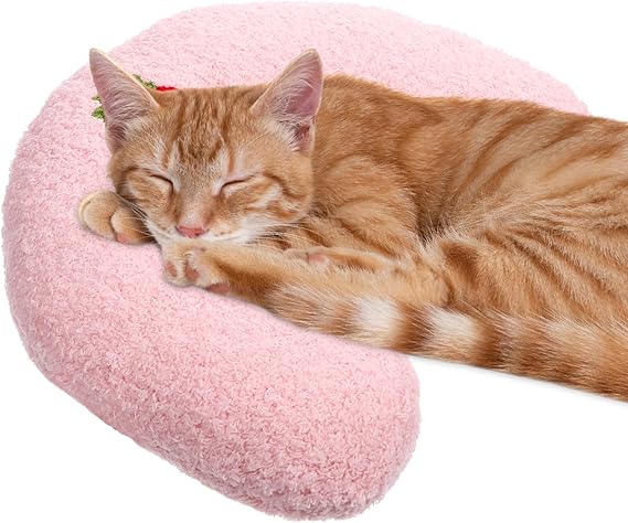 Pillows for Cats, Pink Mini Pillow Pet Cute U-Shaped Kitten Pillow Half Donut Shape Extra Fluffy Embroidered Cat Neck Cat Pillows for Indoor Cats to Sleep Deeply Essentials