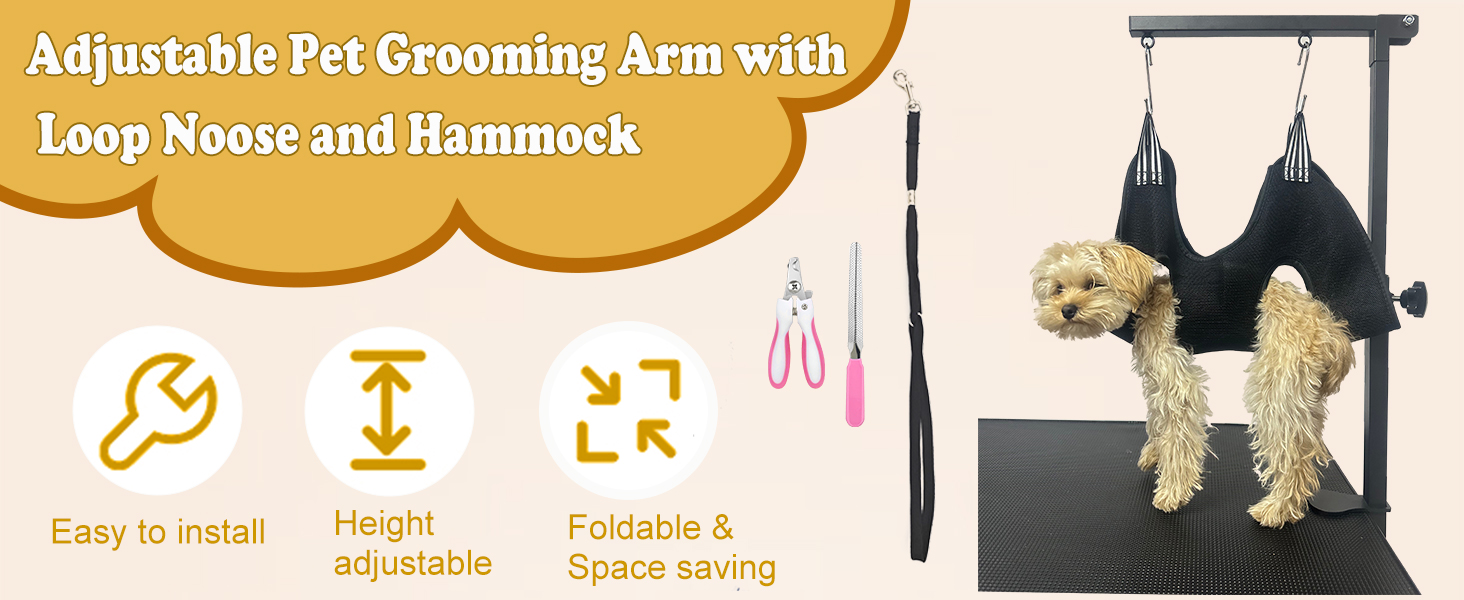 - Complete Pet Grooming Kit - All-in-One Solution for Small Dogs & Cats This professional dog grooming arm set includes adjustable grooming arm, soft cat hammock, nail clippers, nail file, mounting hooks, and grooming loop—everything you need for stress-free pet grooming at home. Perfect for nail trimming, brushing, and bathing small breeds under 10 lbs.