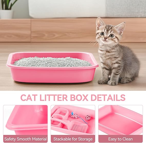 - Kitty Litter Pan with Low Entry Design: The 10.5 x 14.5-inch kitty litter pan is specifically designed with a low entry, making it ideal for newborn kittens or small cats to easily access. This thoughtful feature ensures that even the tiniest kittens can go in and out of the litter pan with ease, promoting independence and comfort from a young age. Its compact size is perfect for small spaces while still providing adequate room for your kitten to do their business comfortably.
