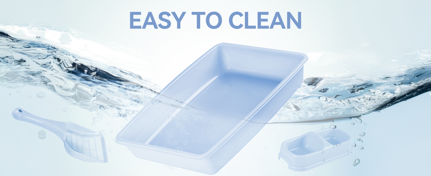 - Durable, Easy-to-Clean Materials: Each item in the starter kit features a high-polished finish that is resistant to odors and stains, making it exceptionally easy to clean. This durable finish ensures that the litter pan, double bowl, and accessories remain fresh and hygienic, even with daily use. The smooth surfaces help prevent the buildup of odors, promoting a clean and healthy environment for your kitten.