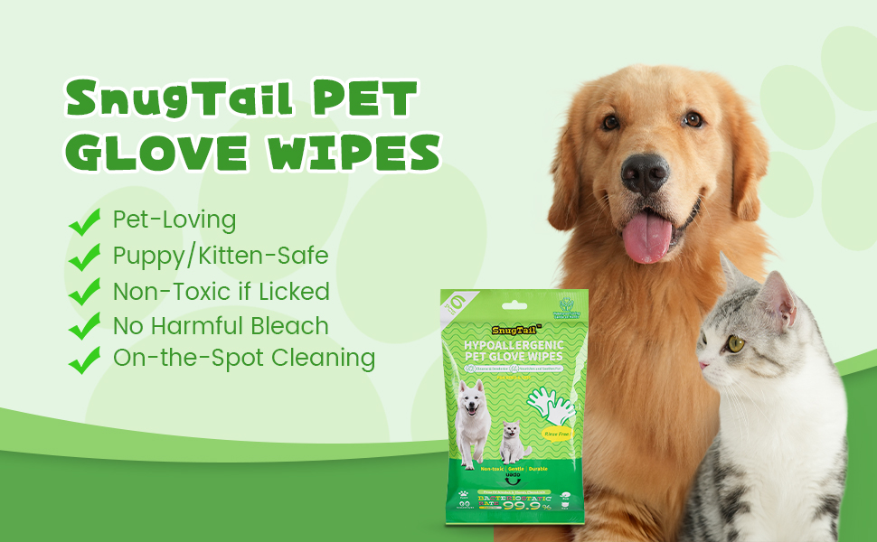- Ergonomic Glove Design:Thicker, high-moisture glove wipes easily clean hard-to-reach areas (paws, ears, tail) while preventing mess—no more struggling with traditional wipes!