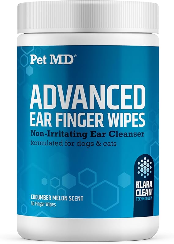 Pet MD Advanced Ear Finger Wipes for Dogs & Cats - Non-Irritating Ear Wipes & Ear Cleaner - Pet Safe Cleaner to Aid in Itchiness and Odor - Cucumber Melon (50ct)