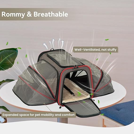 - 【Durable & Practical Design】Solid wire structure prevents collapsing. The top and two-sided windows are made of anti-scratch ventilated mesh. The expandable cat carrier for large cats features an actual PP board base (inside the cushion) for added stability, along with a thick, comfy, washable, and removable plush pad. Made of well-stitched Oxford cloth for long-lasting use.