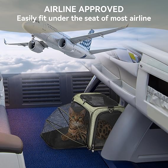 - 【Airline Approved】This petsfit pet carrier for cat in S & M size meets most airline size regulations and fits easily under the airplane seat, including those of American Airlines, ensuring hassle-free travel. For the L size, please check the Airlines’ specific size standards. (Note: The expandable cat carrier has two detachable fiber rods on each side of the top. If the height exceeds the seat limit, simply remove the rods.)
