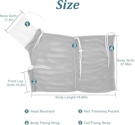 - 【Suitable Size】Cat shower bag body girth: 27.56in, body length: 16.73in, neck perimeter: 11in, front leg girth: 9.45in, universal size design, suitable for most types and sizes of cats, reducing the burden of cat cleaning and care.