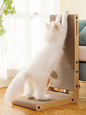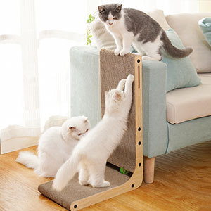 - 5-in-1 Multifunctionality: Cats naturally love upright items like the sides of sofas. This cat scratcher features a unique L-shaped design that combines a cardboard scracther bed, Cat scratching pads, cat scratching post, cat ladder, and cat toys into one product. It’s a versatile solution that can replace multiple essential cat items.