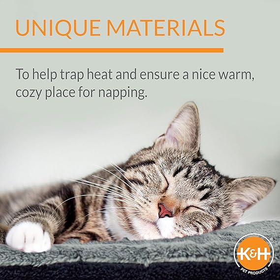 K&H PET PRODUCTS Self-Warming Cat Bed Pad, Self Heating Pad for Outdoor Cat Houses, Warming Mat for Indoor Pet Beds & Furniture, Reversible Blanket, Machine Washable - Small 21 X 17in Gray/ Black