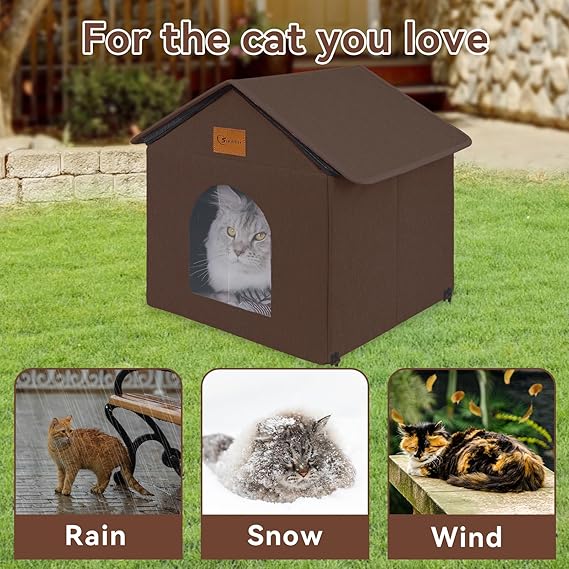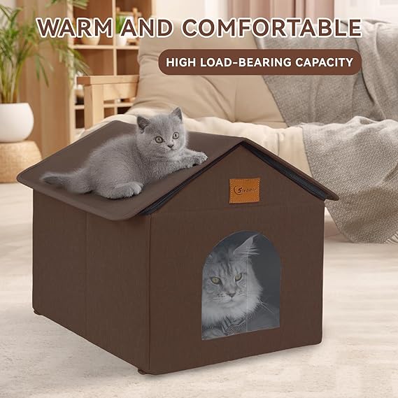 Perfect for outdoor and indoor use, this uniquely designed collapse-proof cat house is made of high-density Oxford cloth waterproof insulated fabric.