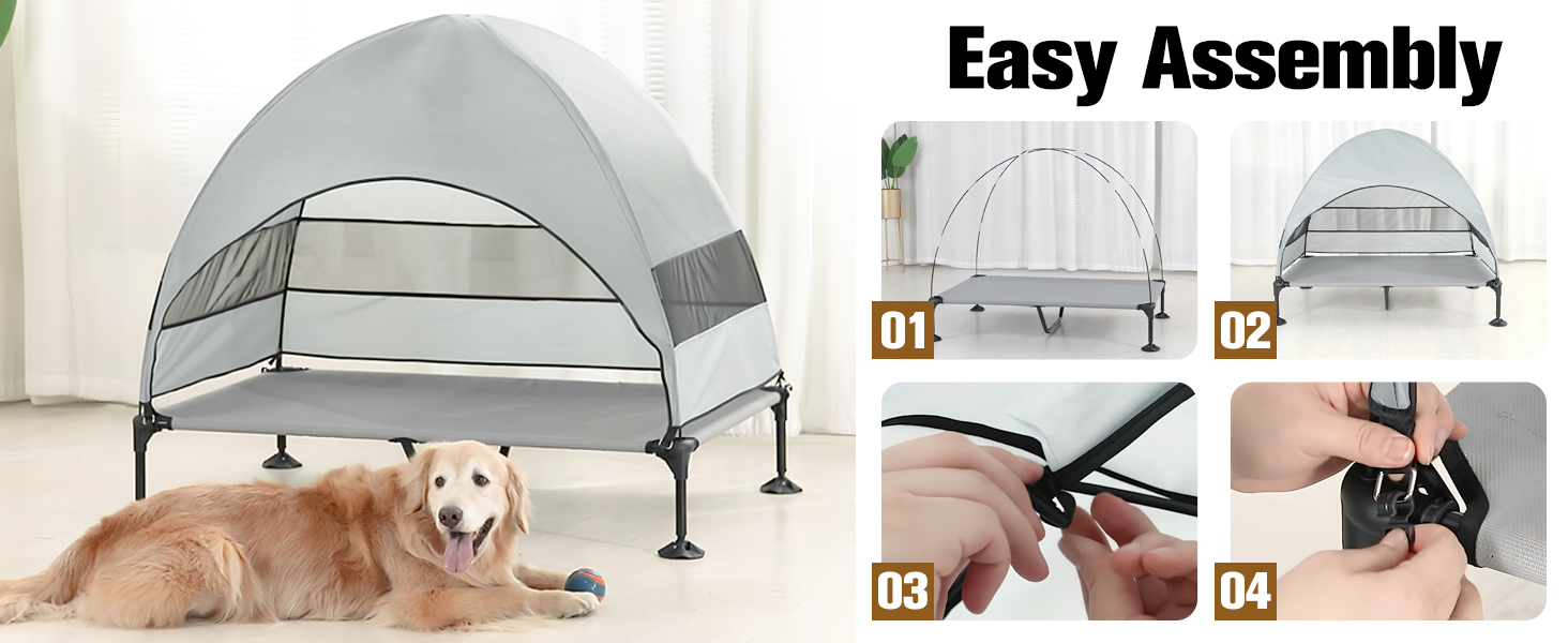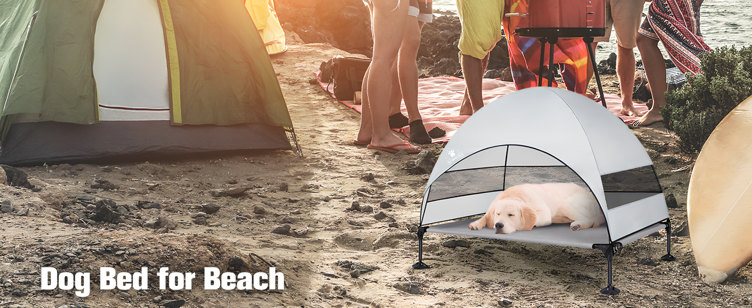 - 【Versatile Application】The unique adjustable feet make the dog cot bed ideal for outdoor use, including beach, picnic, camping, backyard or patio. The raised dog bed provides a cool, dry, and bug-free outdoor vacation for your furry friends. The canopy can be removed to provide dogs with a comfortable place to spend their indoor time.