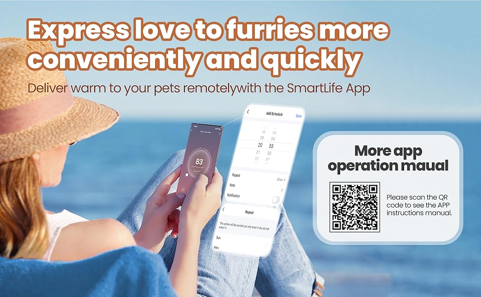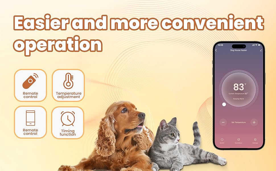 Dog House Heater,Pet House Heater with APP Remote&Thermostat,41ยฐF/113ยฐF Adjustable Temp 24H Timer Outdoor Pet Safe Heaters,500W IPX5 Waterproof Cat Heater Anti Chew Cord with WIFI