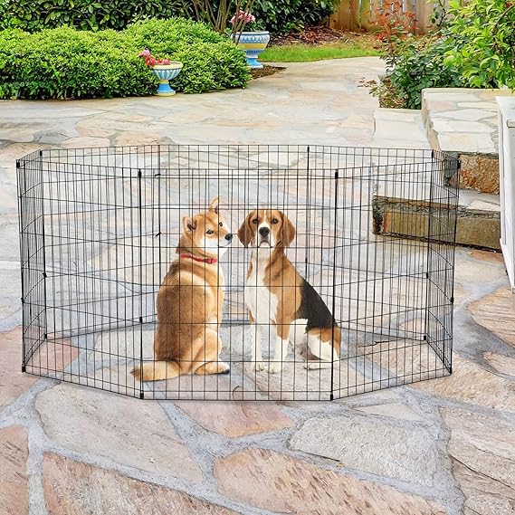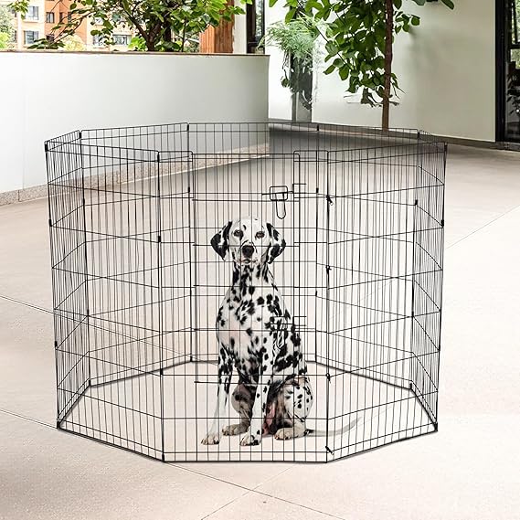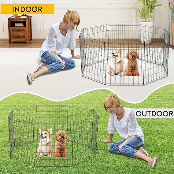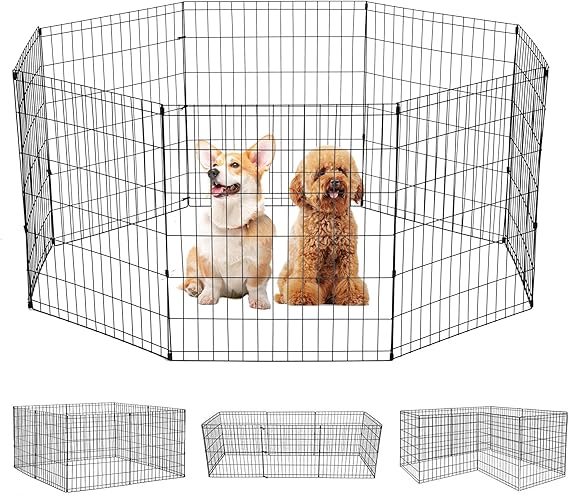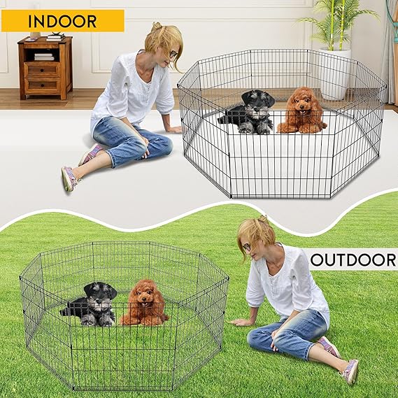 FDW 24 Inch Dog Pen 8 Panel Dog Playpen Indoor Outdoor Metal Puppy Pet Fence Portable Folding Animal Exercise Fence,Black