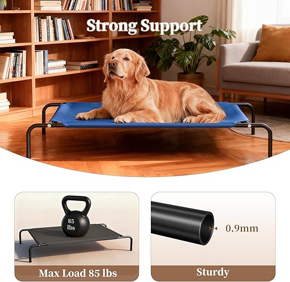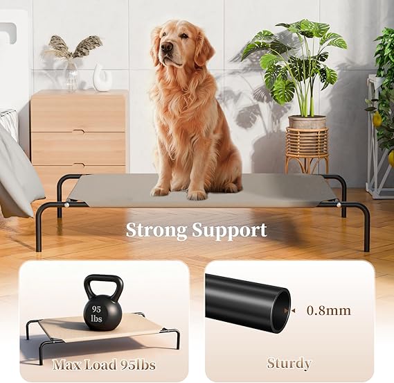 - 【Sturdy and Stable】These dog cots beds for large dogs are made of heavy-duty, rust-proof steel tubes and non-slip rubber feet—supports energetic dogs without wobbling, even during playtime